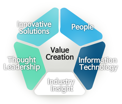 펜타온은 최고의 인재와 기술로 혁신적인 제품과 서비스를 제공함으로써 고객에게 인정 받고자 합니다. 이를 위해 People, IT, Industry Insight, Thought Leadership, Innovative Solutions의 5대 핵심역량을 선정하여 인재양성 및 연구개발에 과감히 투자하고 있습니다. 이를 통해 고객 서비스 품질을 높일 신규 서비스, 특허, 솔루션을 확대해 나갈 것입니다.